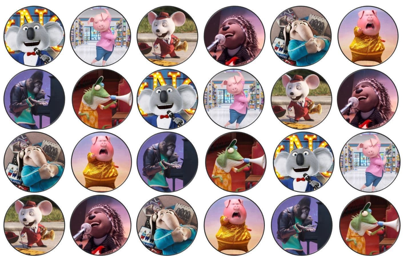 48 Sing (The Movie) Edible Rice Paper Toppers 3cm x 3cm