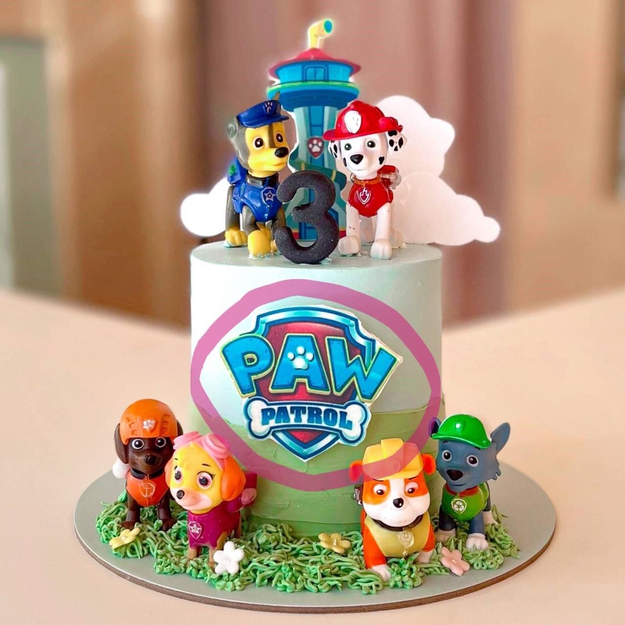 Paw Patrol Logo 9cm x 8cm Edible Icing Decoration Blue or Purple